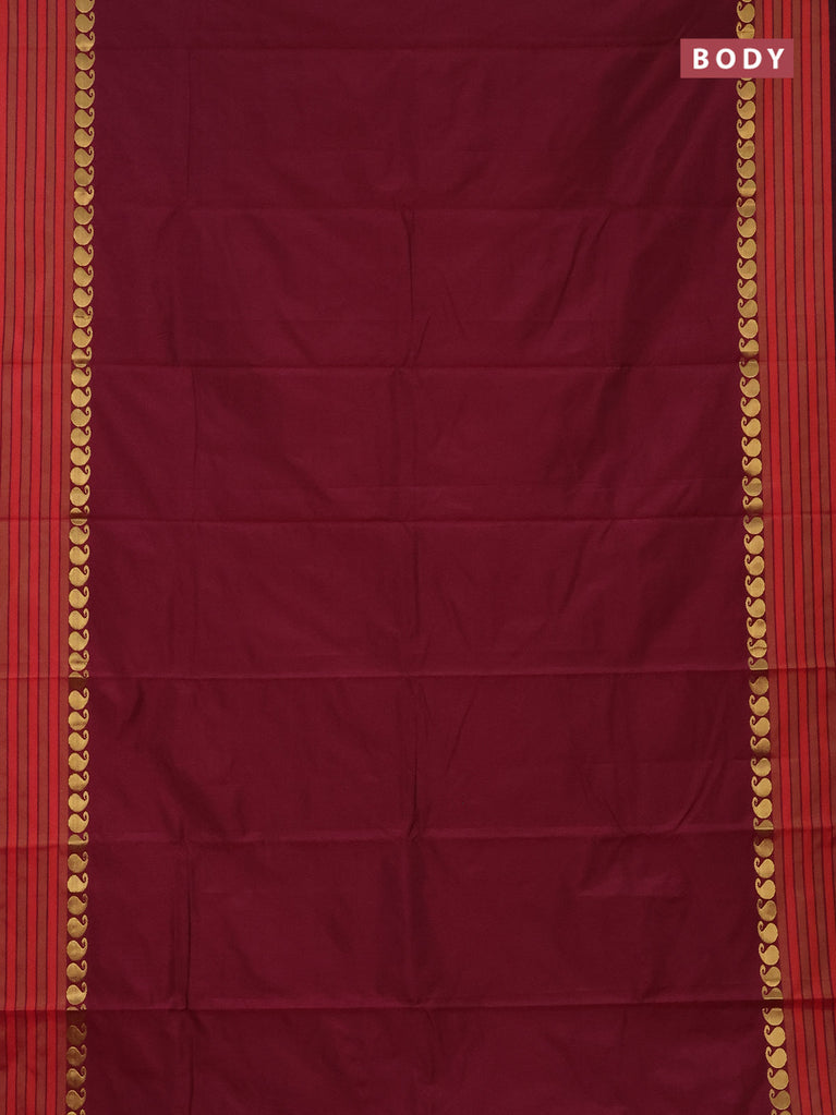 Arani semi silk saree dark magenta pink with plain body and zari woven border