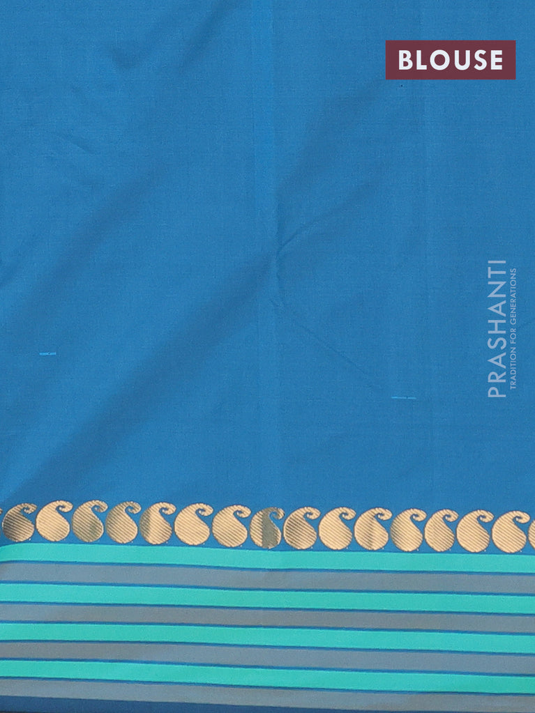 Arani semi silk saree peacock blue with plain body and small zari woven border