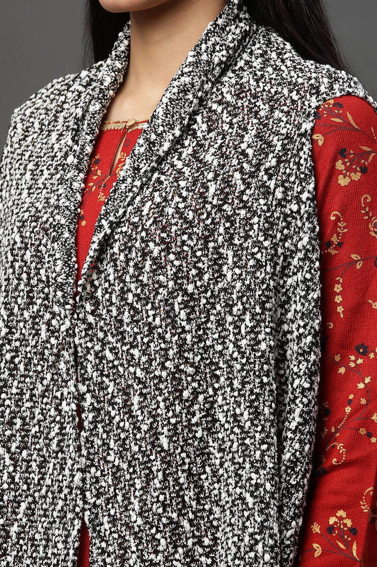 Capture The Gaze Of Every With This Enchanting Black and White Sleeve Less Round neck kurta