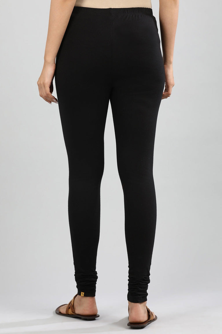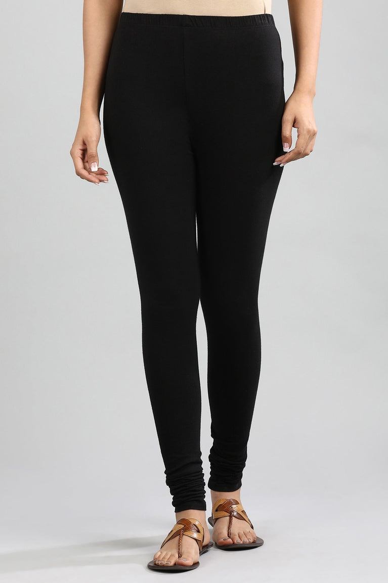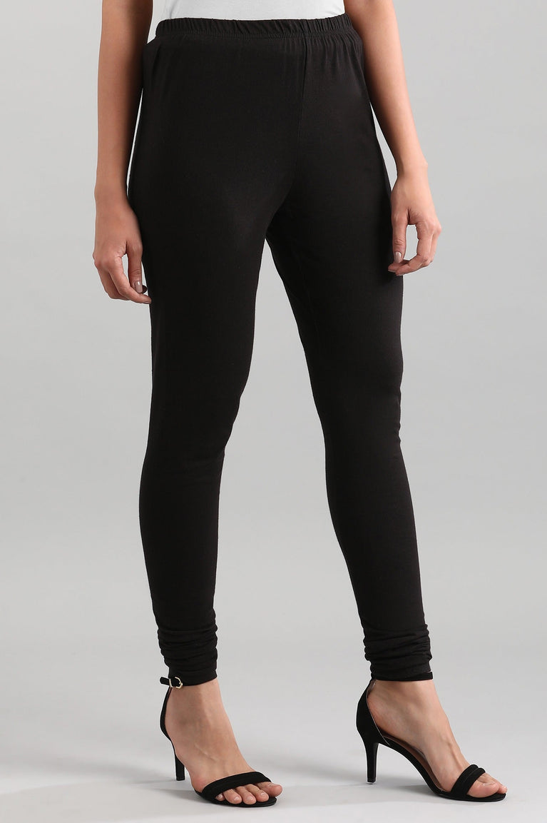 Black solid churidar with elasticated waistband.