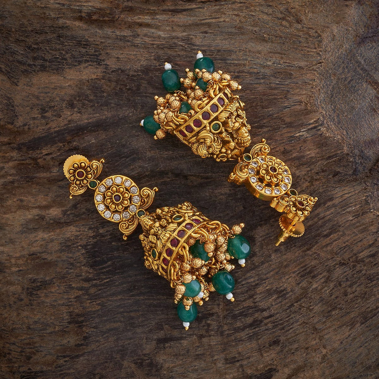 Flower Design Antique EarringMake your outfits look better than ever with these earrings. The antique earrings are designed with ruby-coloured stones set against a gold-tone polish, creating a timeless appeal. The detailing complements the vivid hues of the stones, making them ideal for festive occasions or traditional attire. Pair these earrings with your festive kurtas for a sweet, feminine look.