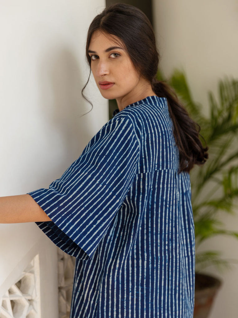 Set of 2 - Keya Indigo Cotton Tunic and Palazzo