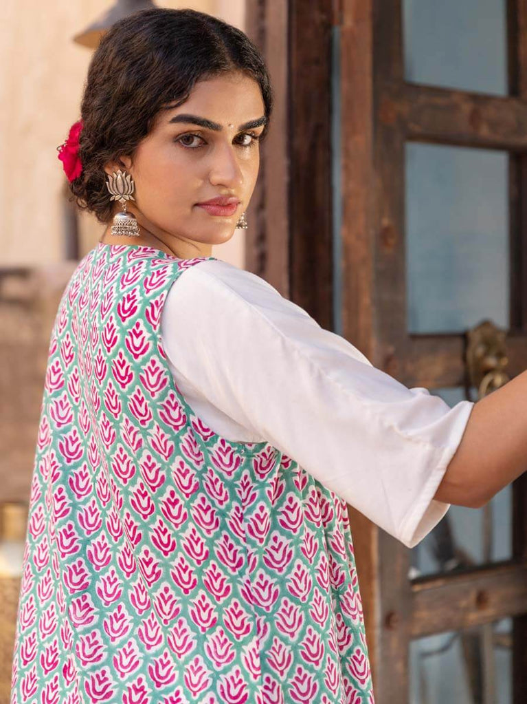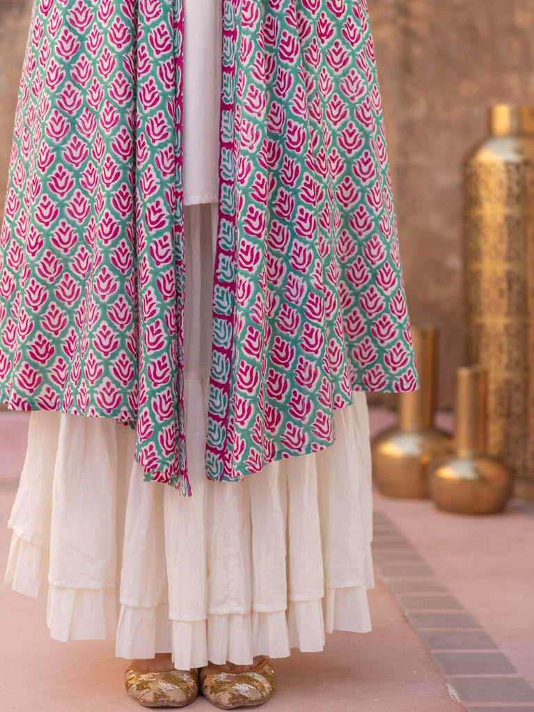 Set of 3 - Anant Organic Cotton Block Printed Long Kurta with Jacket