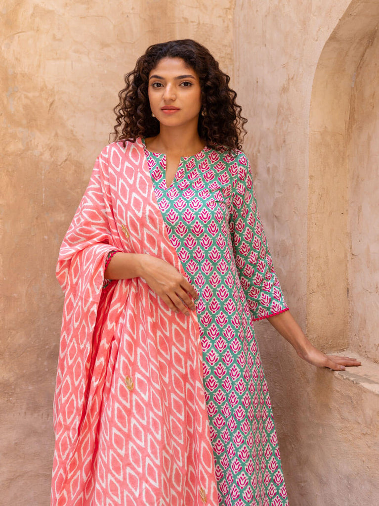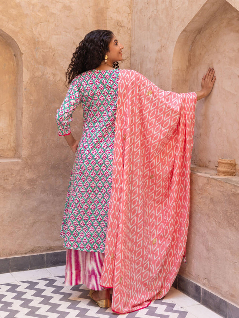 Set of 3 - Geetanjali Cotton Kurta, Palazzo and Dupatta