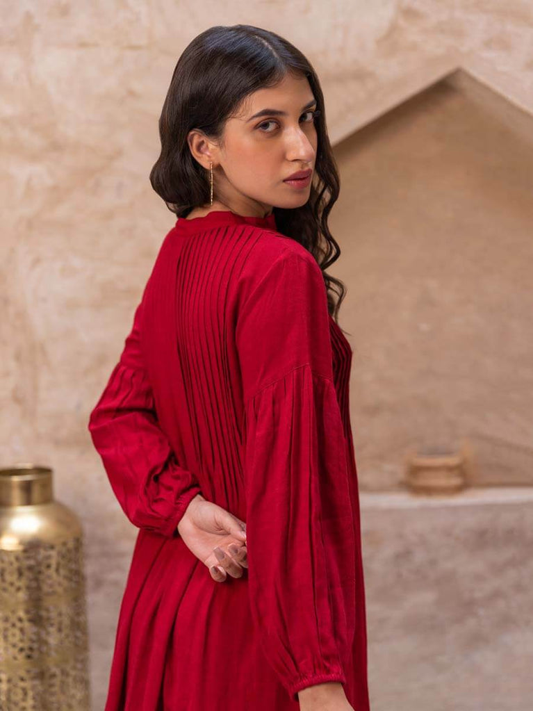 Set of 2- Sunheri Pintuck Dress With Angrakha Jacket