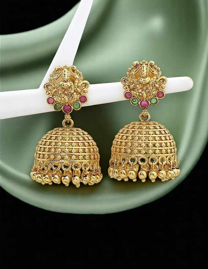 Designer Lakshmi Devi Ruby and Emerald Jhumka Earrings