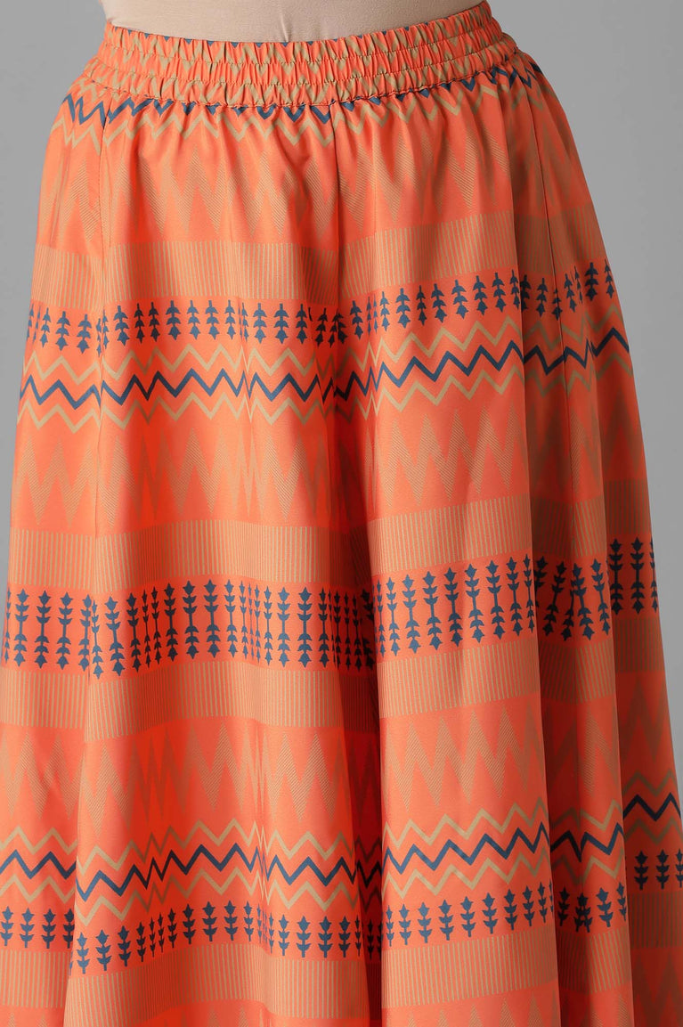 A kurta set laced with elegance to make you look graceful on all occasions. It features a blue solid straight kurta having zari embroidered yoke with sequin embellished round neckline and three-quarter sleeves. Perfectly paired with contrasting orange ankle length printed culottes.