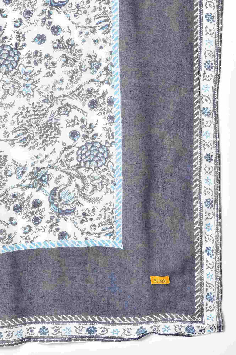 Blue Embroidered Seer Sucker Kurta, Printed Palazzo and Dupatta Set