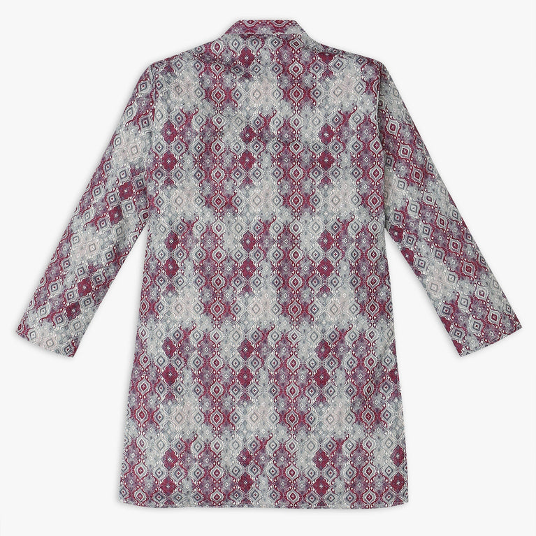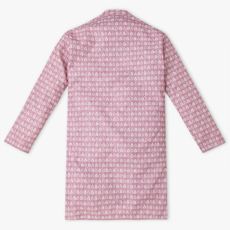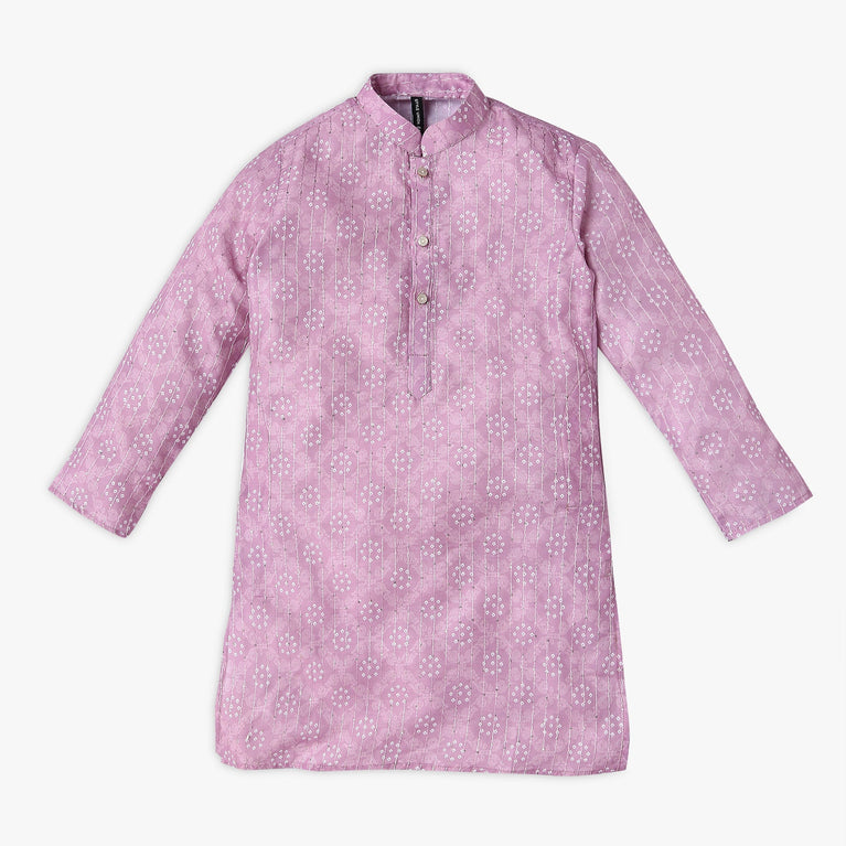 These printed pattern kurta with pant set has mandarin collar and full sleeve. Made from polyester cotton, your kid's feel comfortable wearing the product.