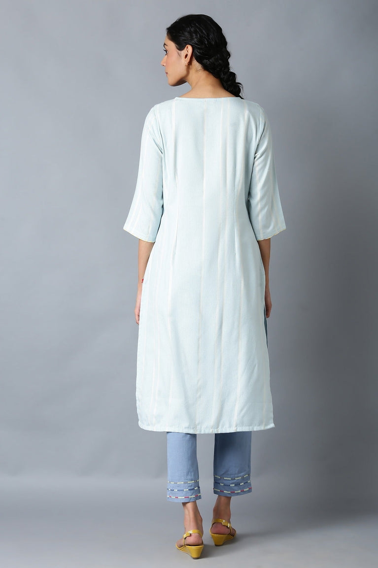 Light Blue Geometric Printed Rayon Dobby Straight Kurta with Slim Pant Set