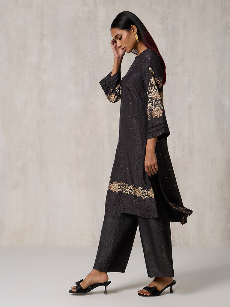 Floral Design Black Kurta Set