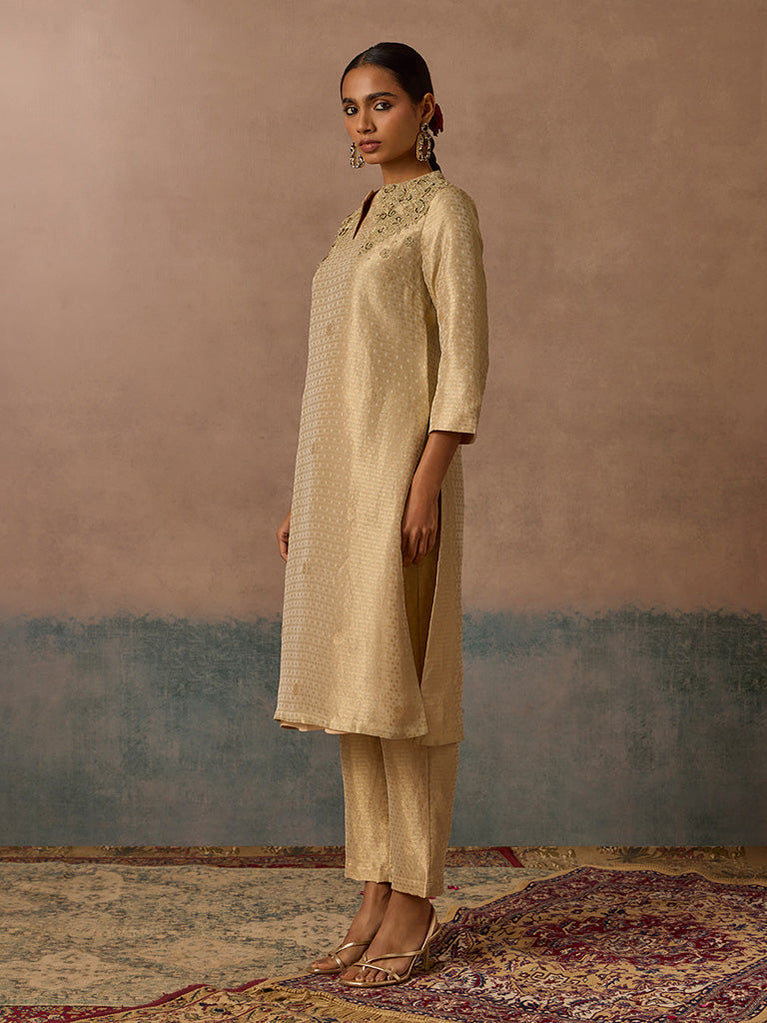 Embroidered Gold Kurta Set