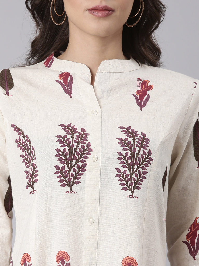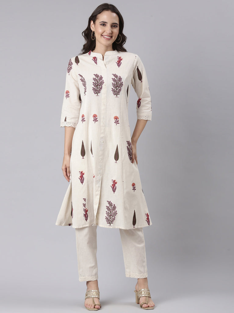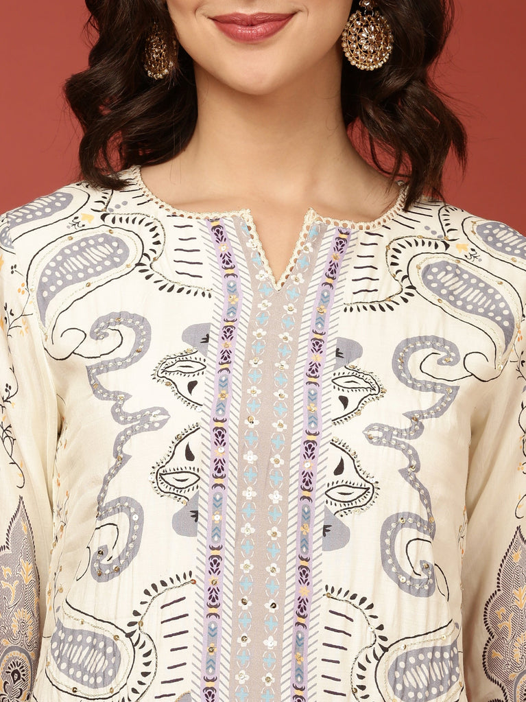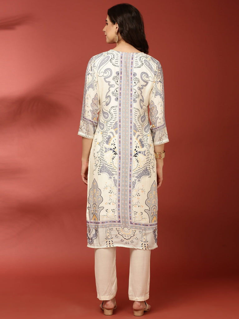 Cream Muslin Printed Two Piece Set