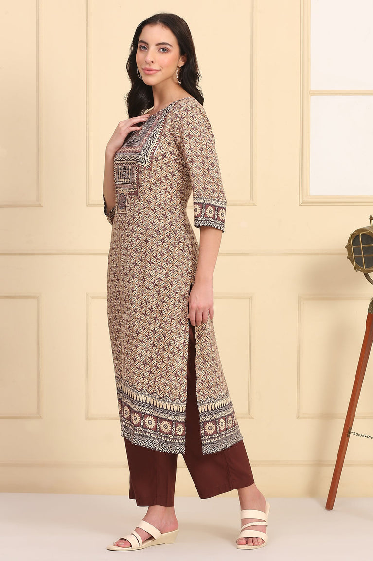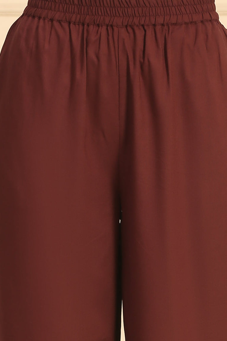 Immerse in earthy elegance with this madder brown straight kurta set from Aurelia, thoughtfully crafted for casual charm. Comprising a printed kurta, solid palazzos, and a contrasting dupatta, this three-piece kurta is tailored from soft modal, viscose rayon, and polyester fabrics, delivering both breathability and a rich texture. The geometric print, subtle sequin embellishment, and calf-length silhouette elevate everyday ethnic dressing. Styled with a round neck, 3/4th regular sleeves, and a relaxed fit, this set is perfect for your summer wardrobe, offering comfort and sophistication for laid-back casual occasions.