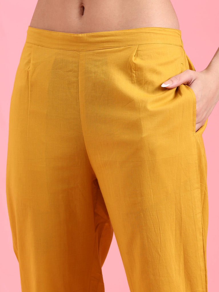This Exquisite Set Is Crafted From Pure Cotton And Patterned With Luxurious Ethnic Motifs. It Features A Deep V-Neck, ¾ Length Sleeves, A Gorgeous Knee-Length Straight Cut, And A Finely Detailed Hemline. The Trousers And Dupatta Provide A Perfect Finishing Touch For A Timelessly Glamorous Ensemble.