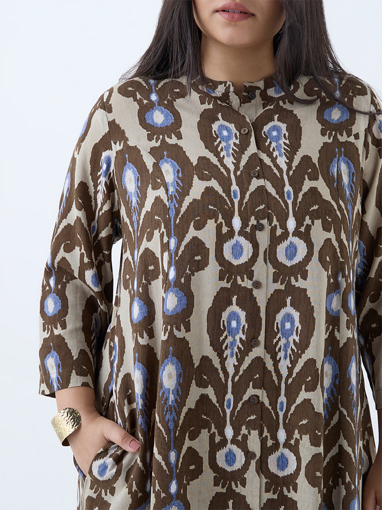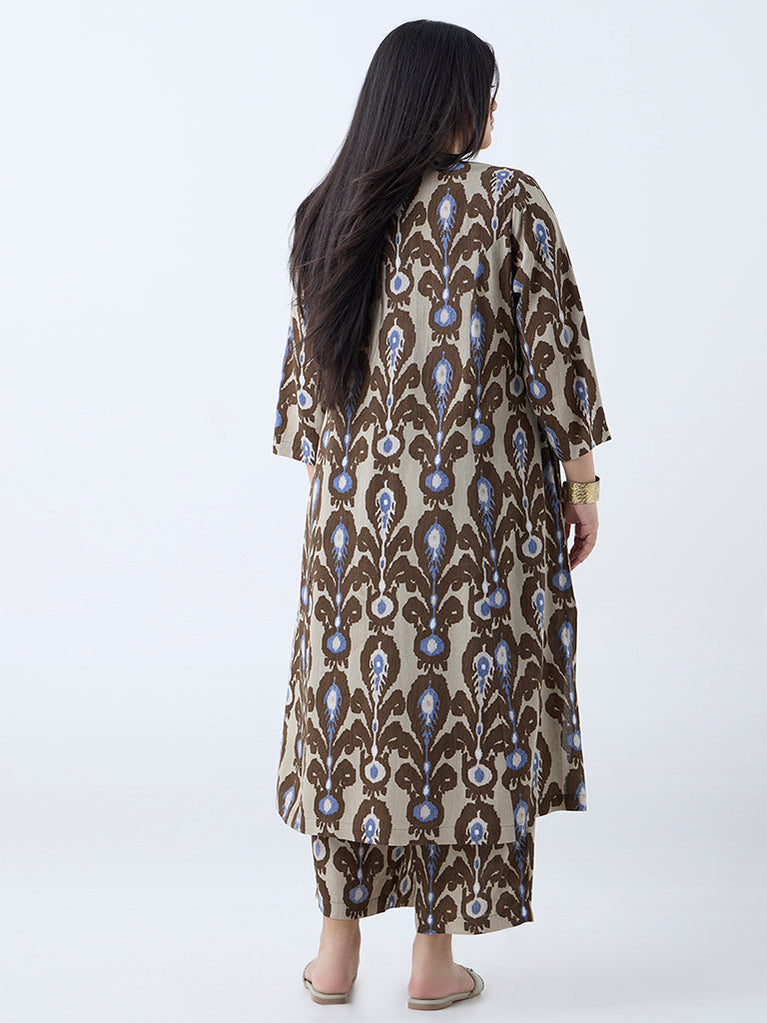 Diza Brown Ikat Printed A-Line Kurta