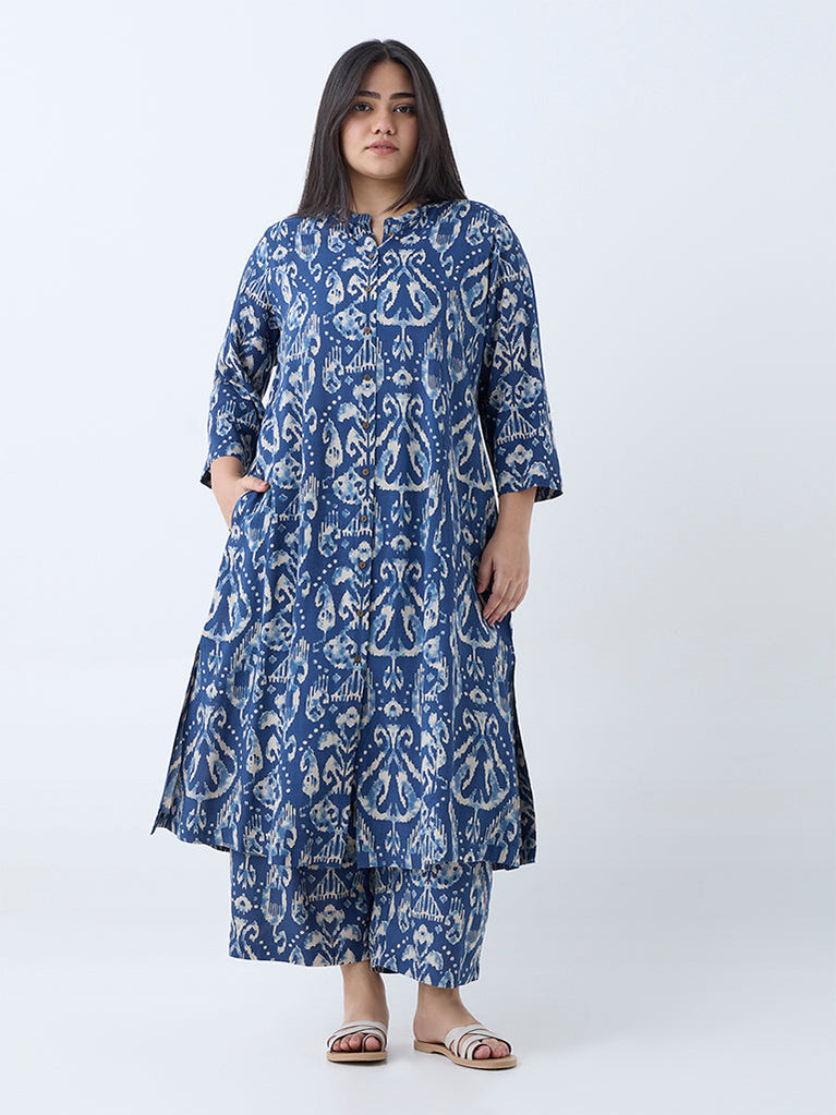 Diza Dark Blue Ikat Design A-Line Kurta