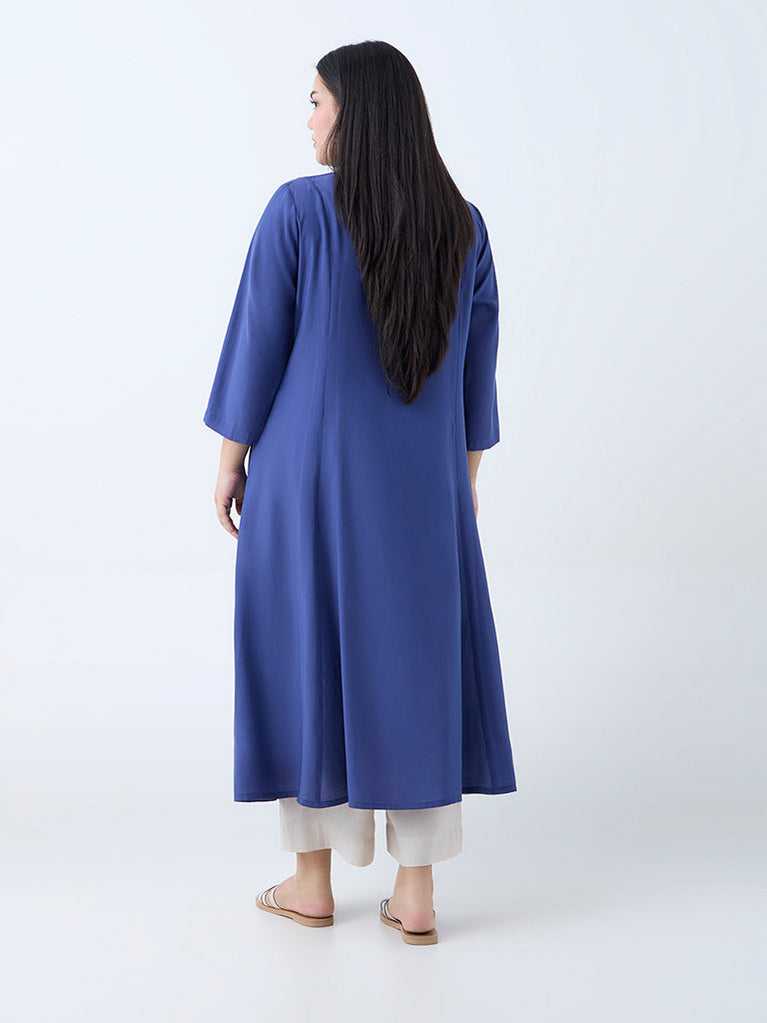 Diza Dark Blue Floral Embroidered A-Line Kurta