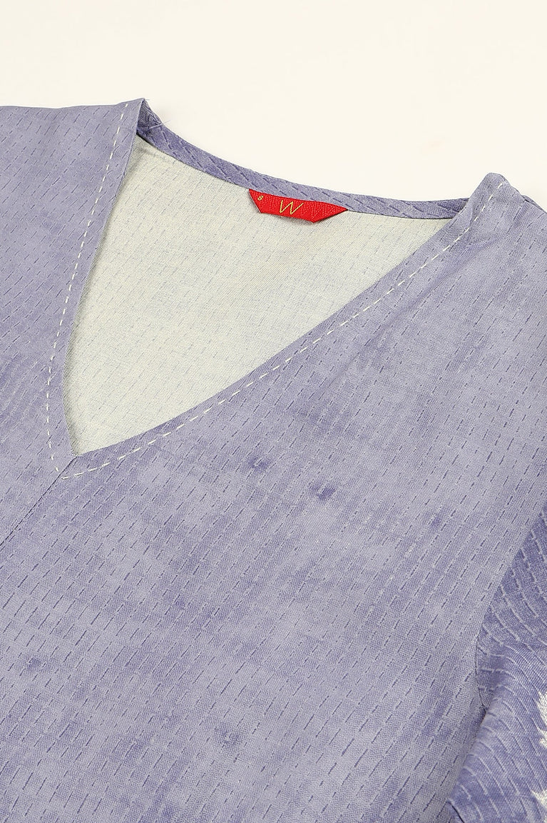 Periwinkle Blue Floral Printed kurta With Embroidery Detail On V-Neck