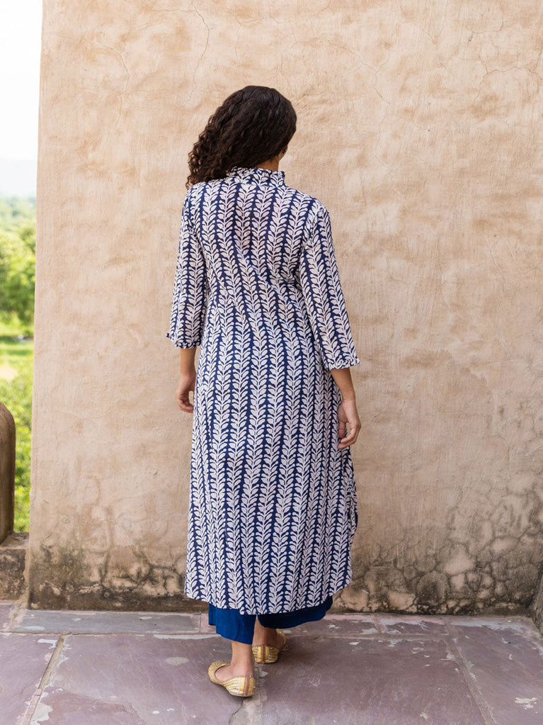 Blue Fern Cotton Long Kurta