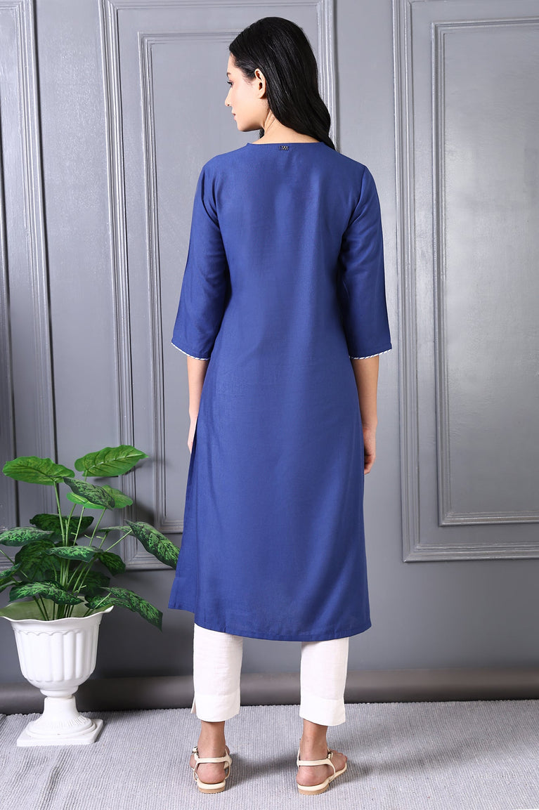 Blue Embroidered Straight Rayon Kurta