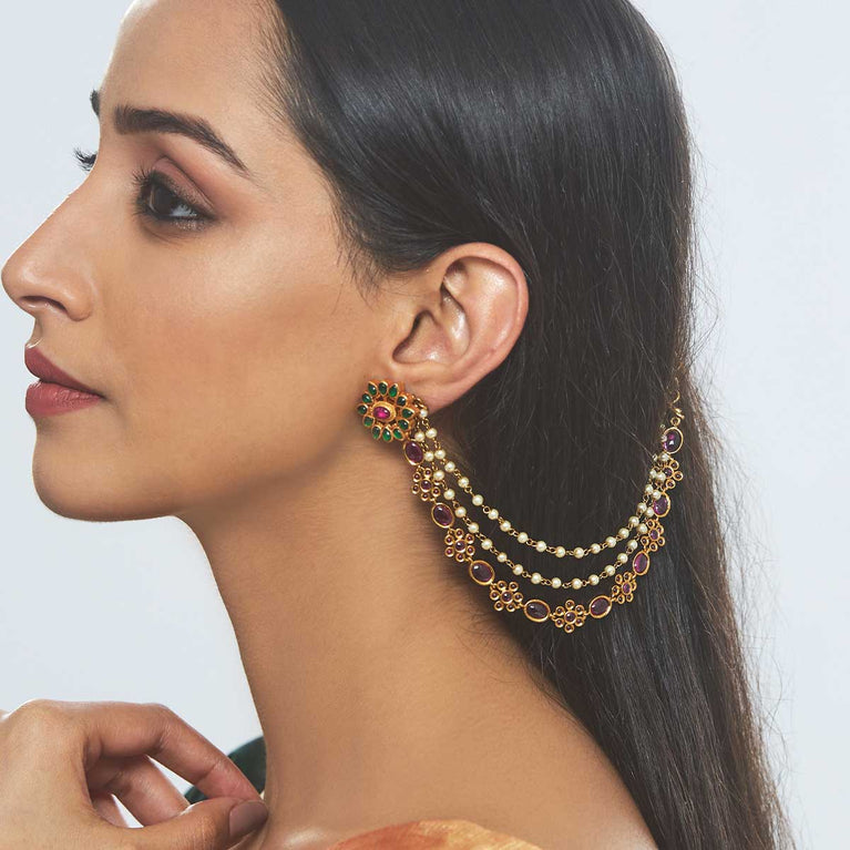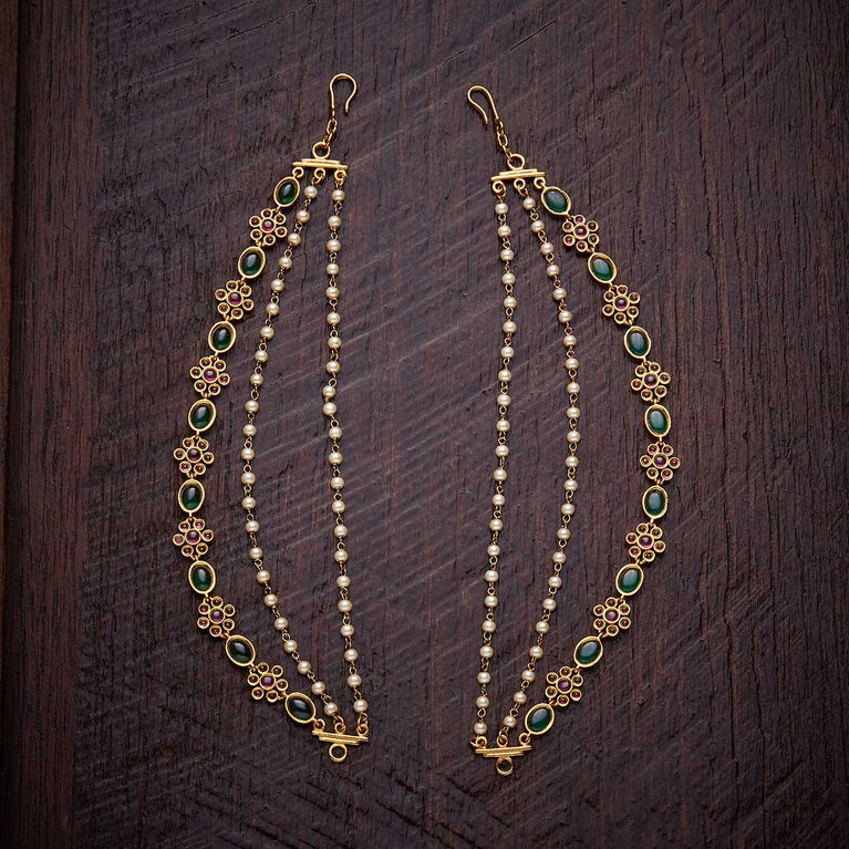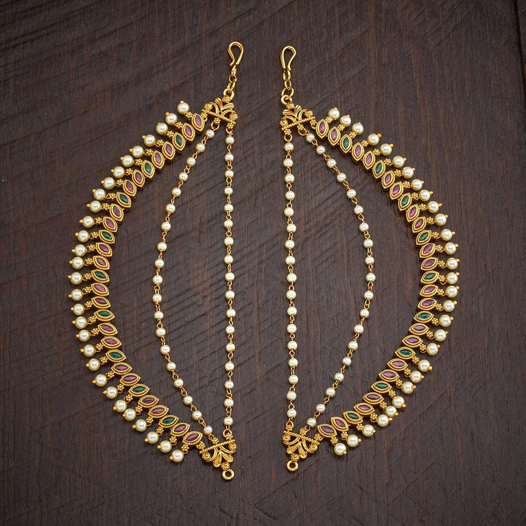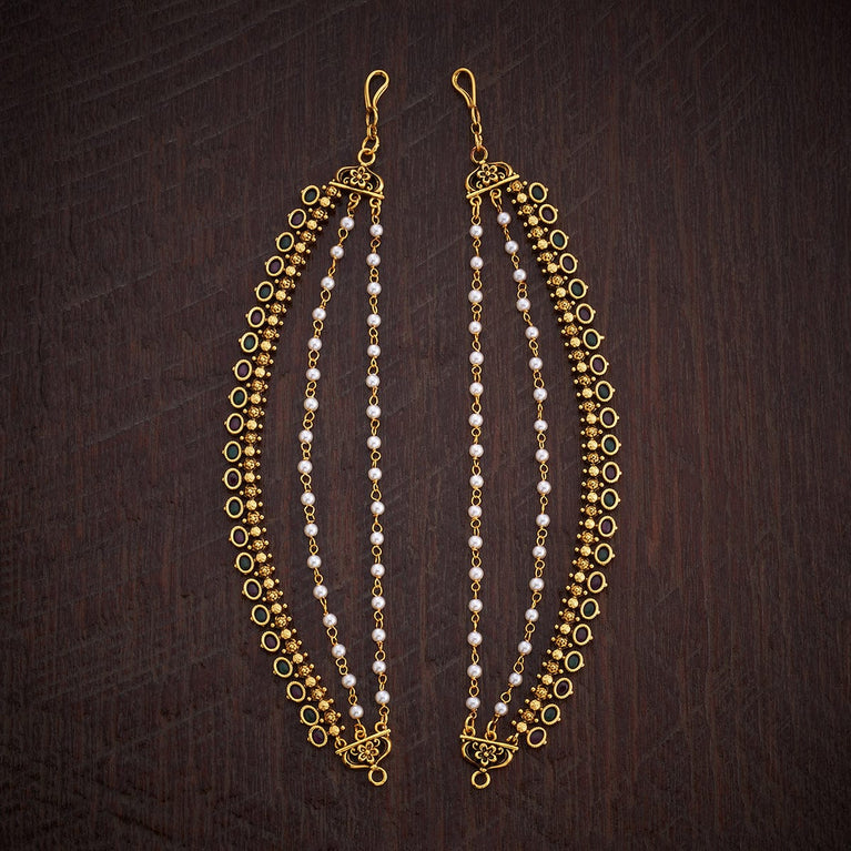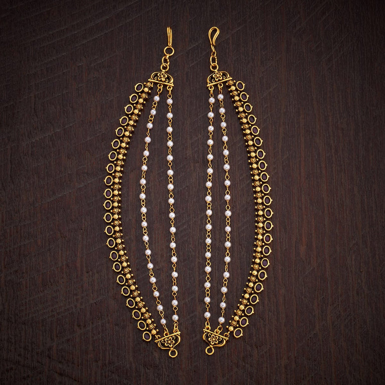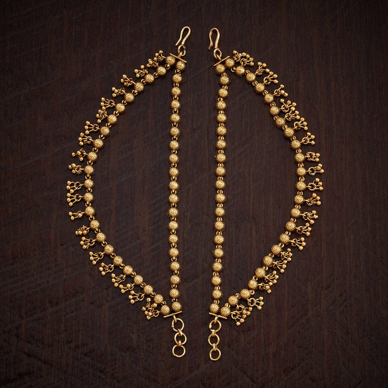 Kushal's Fashion Jewellery Antique MatilElevate your traditional look with this pair of antique Matil this festive season. Its elegant design and impressive finishing will add an alluring charm to your Indian look and will make you stand out among the crowd. You can style it with both tied or loose hair. Its gold polishing will enhance your traditional look, complementing the all-ethnic vibes. Style up your attire with our antique matil this festive season.
