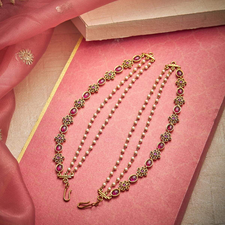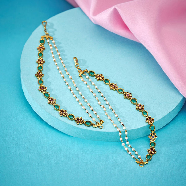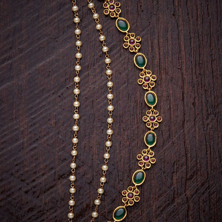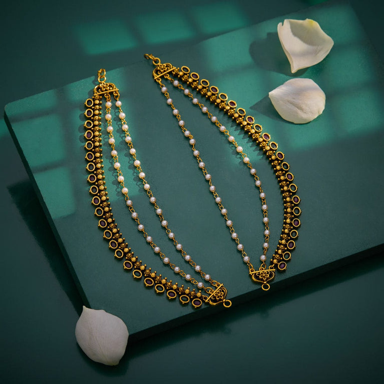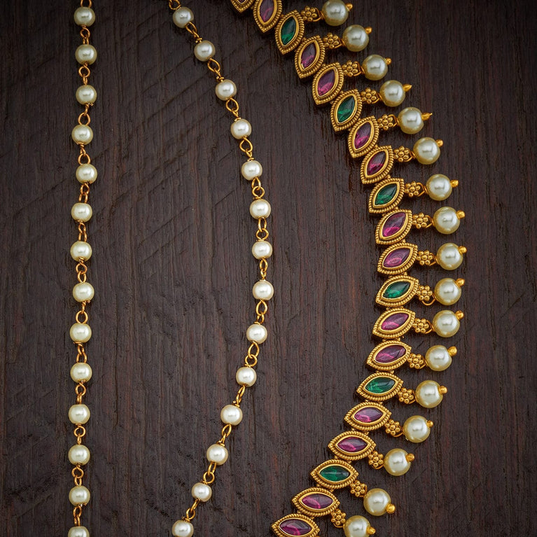 Kushal's Fashion Jewellery Antique MatilGet a traditional look with our collections of antique matil. Made of quality copper alloy, this matil will elevate your conventional look when paired with traditional attire. Our synthetic stones and beads ensure the shimmering look of the jewellery. This gold-polished matil will add a fresh look to your traditional fashion.