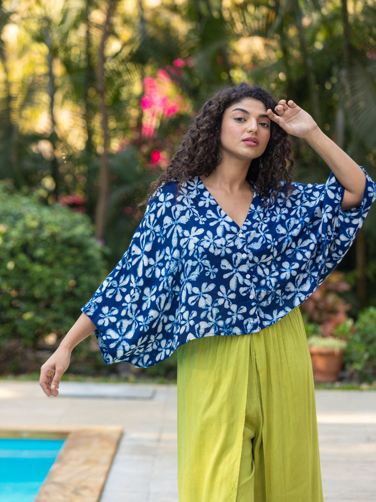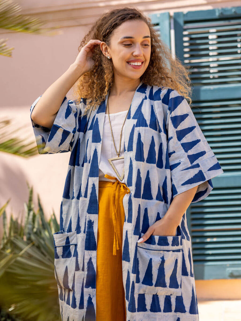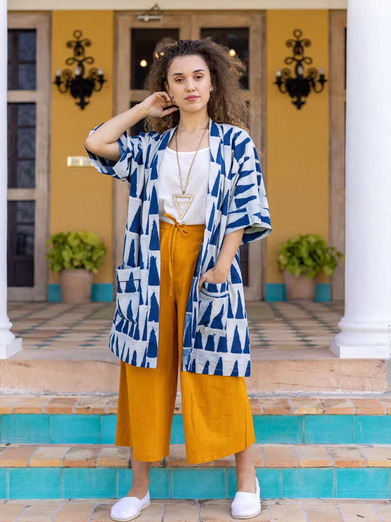 Set of 2 - Mimosa Indigo Dabu Kimono Jacket and Palazzo Pants
