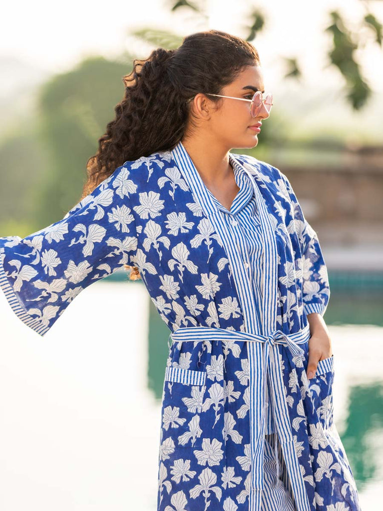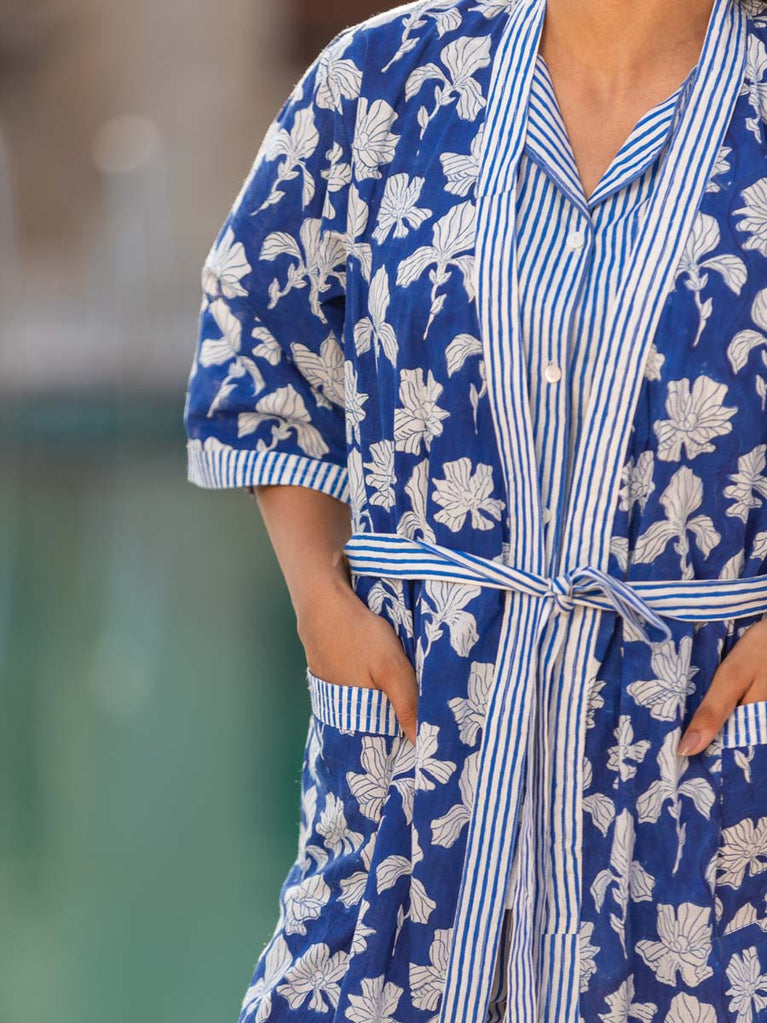 Silk Route Block Printed Cotton Kimono Jacket