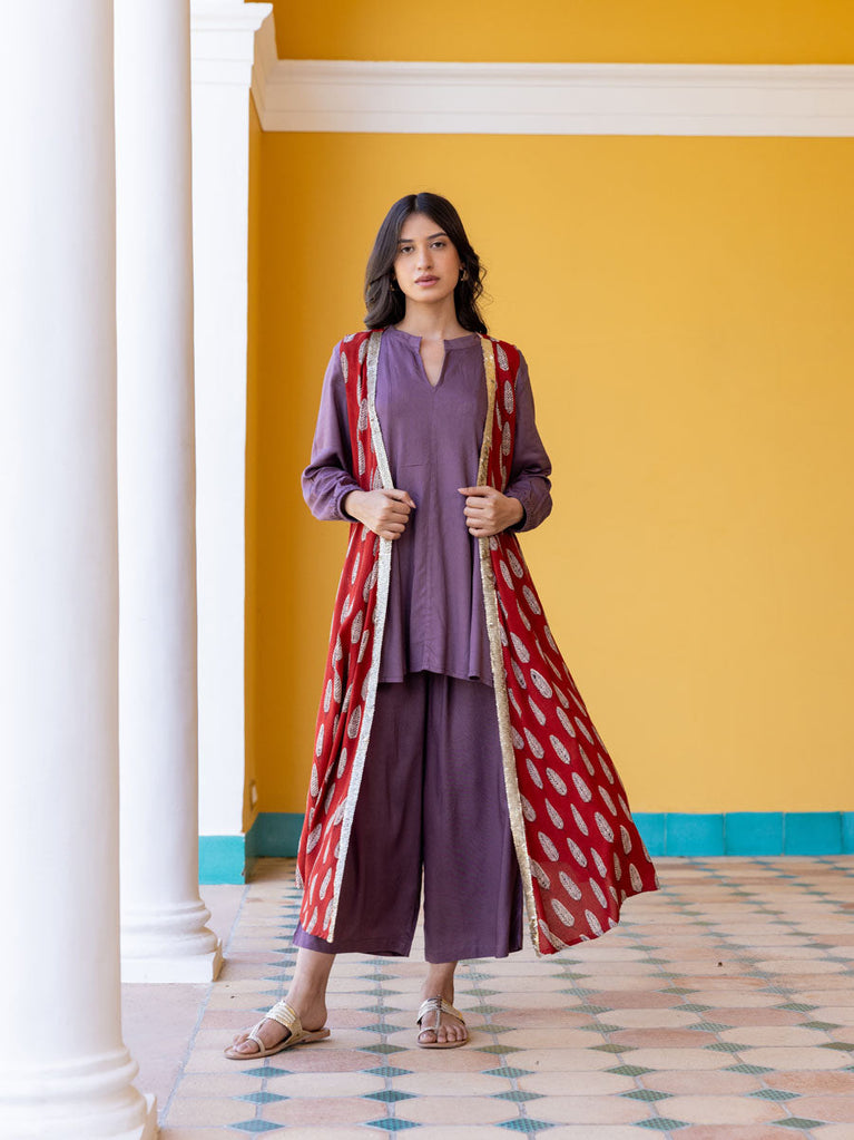 Set of 3 - Pujo Kurta, Lantern Pants and Jacket