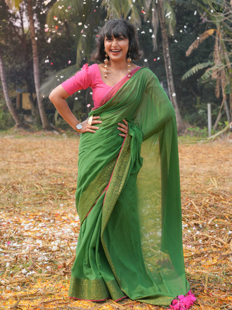 Note: Our mul sarees are slightly transparent, it’s the nature of the fabric and part of its soft, airy charm.
