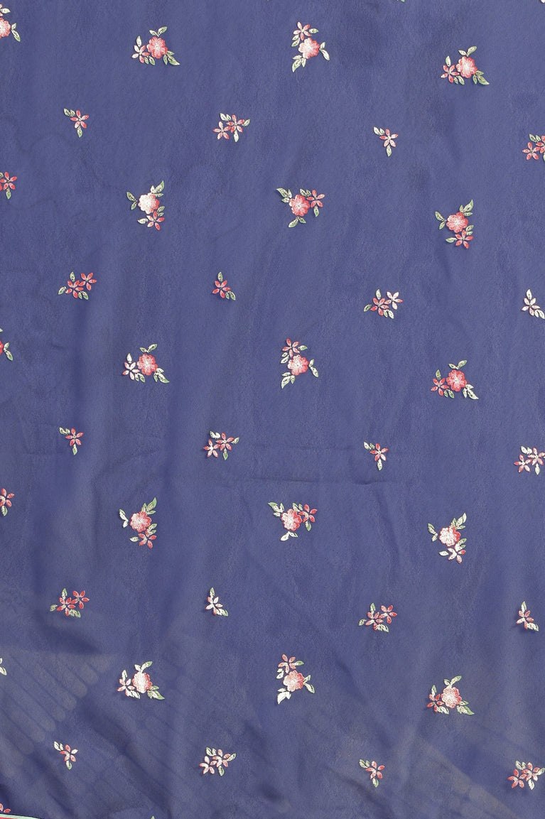 Blue Floral Printed with Zari Embroidery LIVA Dress and Dupatta
