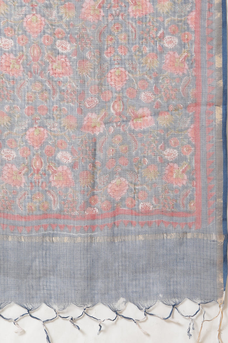 Blue Floral Multi-Colored Hand Block Print Kurta, Pants And Dupatta Set