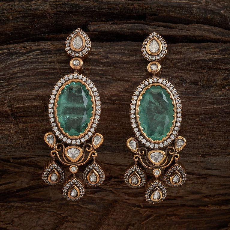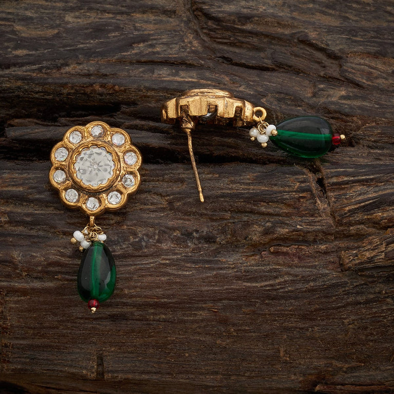 Kushal's Fashion Jewellery Paisley Design Kundan EarringAll types of polishes look splendid on Kundan stones, but Victorian polish gives it the finest look and our latest pair of Kundan earrings are here to give you that look. The Victorian polish on the Kundan stones paired with the green and ruby stones makes these hanging earrings one of the best accessories you can get this wedding season.