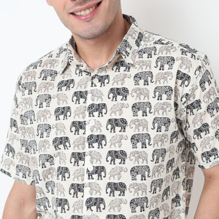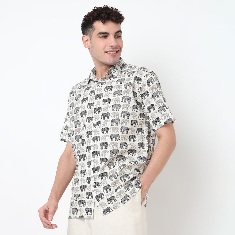Camp Collar Half Sleeve Cuban Printed Relaxed Fit Shirt