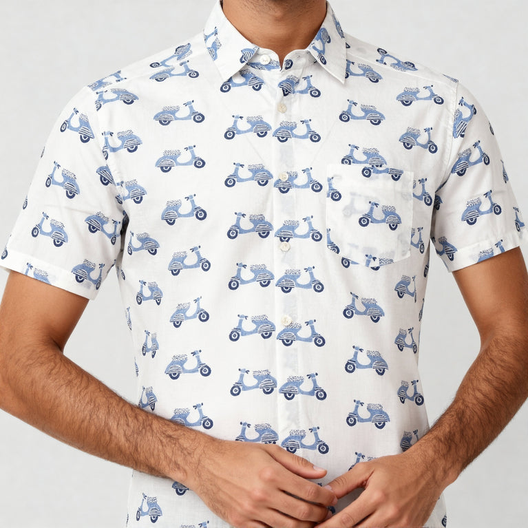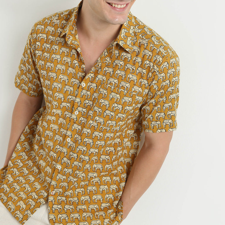 Camp Collar & Half Sleeves: Relaxed collar style with short sleeves for a laid-back vibe.