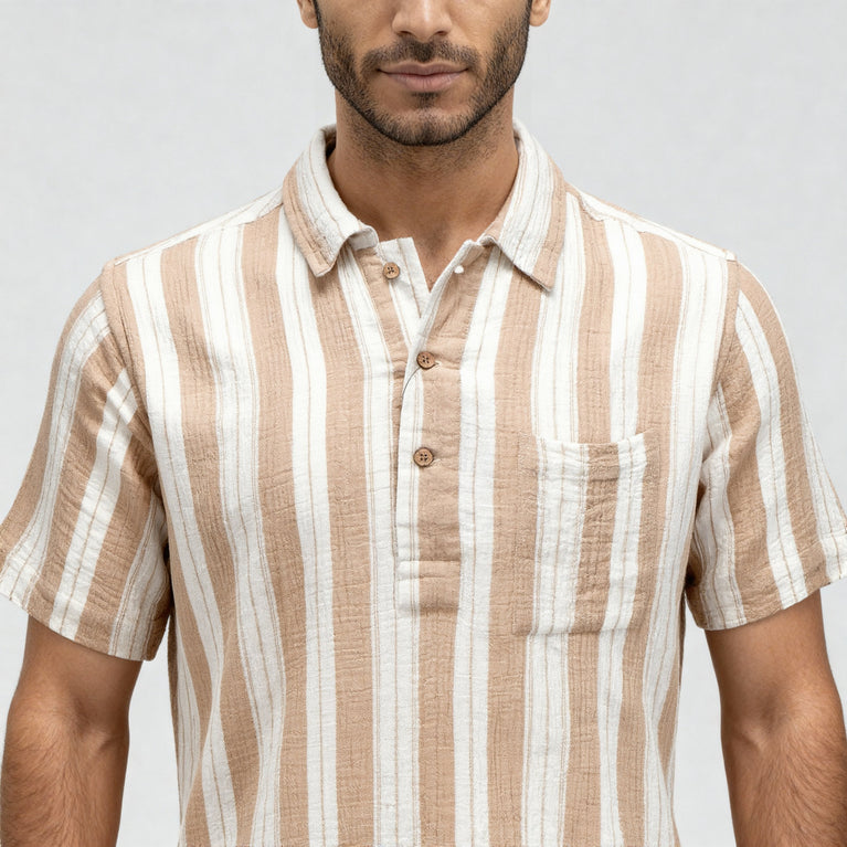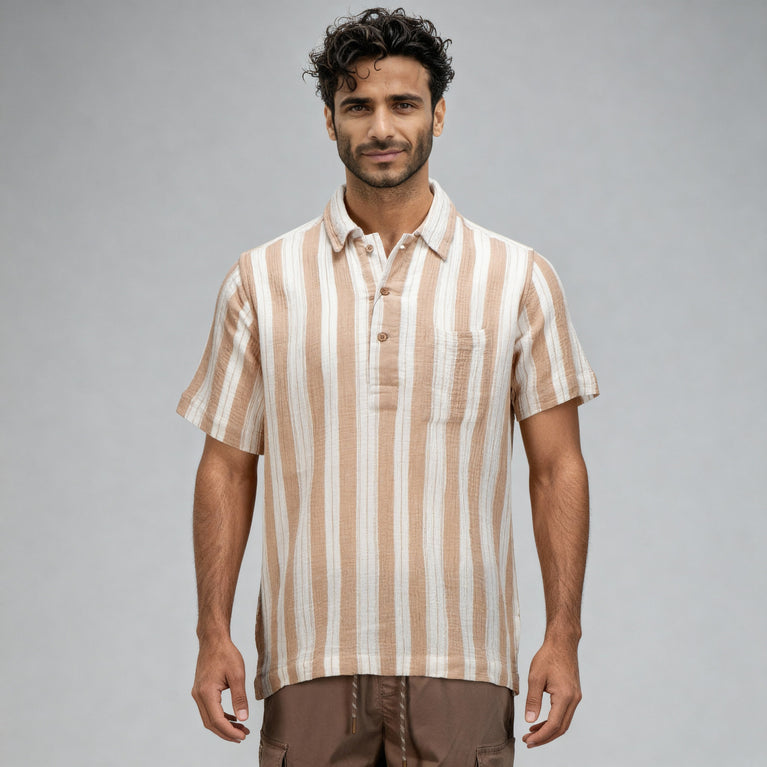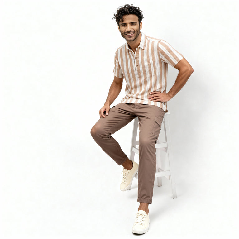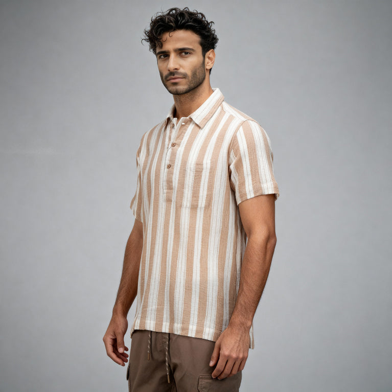 Elevate your casual wear with our Cotton Striped Polo Neck Shirt, designed for men who appreciate both comfort and style. Crafted from soft, woven cotton, this shirt features a trendy striped pattern that adds a touch of sophistication to any outfit.