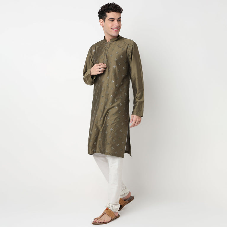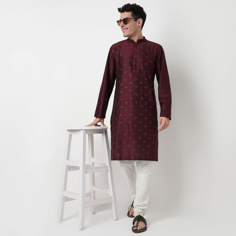 This printed pattern kurta has a mandarin collar and full sleeve. Made from cotton polyester, it is soft and comfortable to wear.