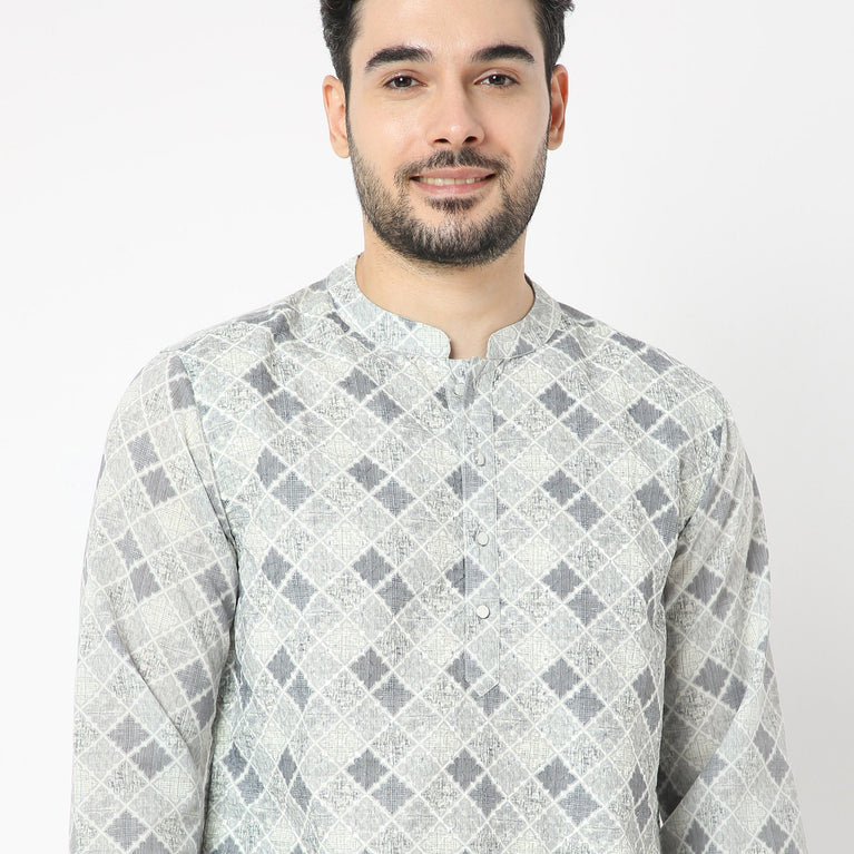 Experience the perfect blend of comfort and style with this short-length kurta. Crafted from premium cotton, it offers breathability and a soft feel, making it ideal for all-day wear. The structured design and mandarin collar add a touch of sophistication, while the regular fit ensures a relaxed and comfortable silhouette.