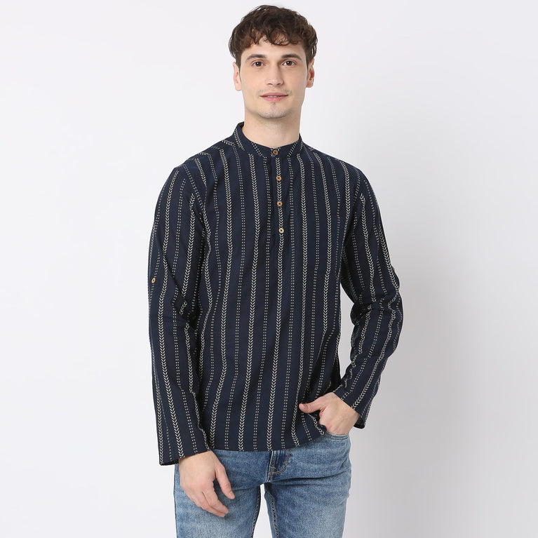 Artistry™ Yarn Dyed Structured Short Madrarin Collar Short Length Kurta Shirt