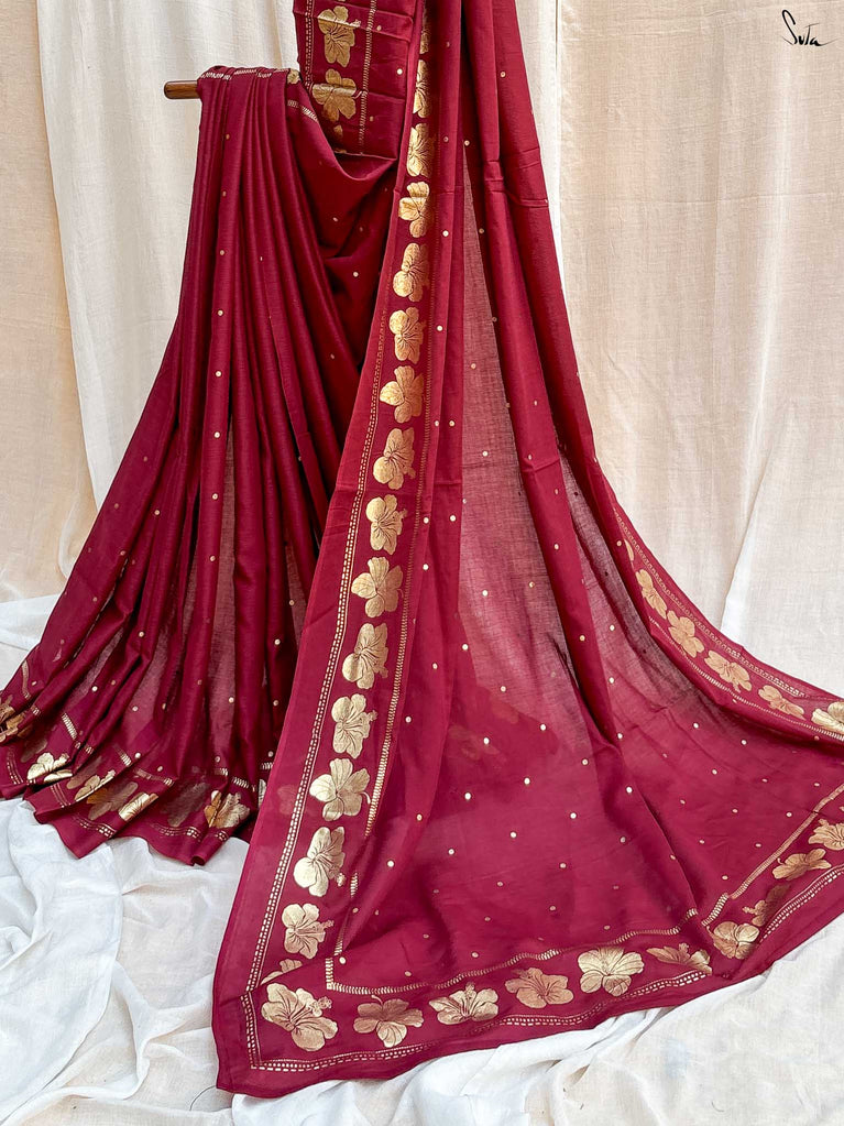 Note: Our mul sarees are slightly transparent, it’s the nature of the fabric and part of its soft, airy charm.