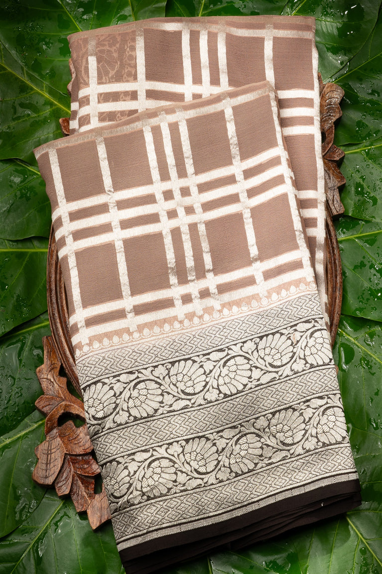 Mandir Light Brown & Brown Banarasi Checks Saree
