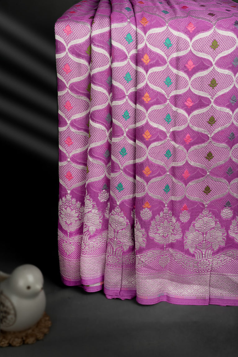 Mandir Lavender & Gold Banarasi Jaal Saree