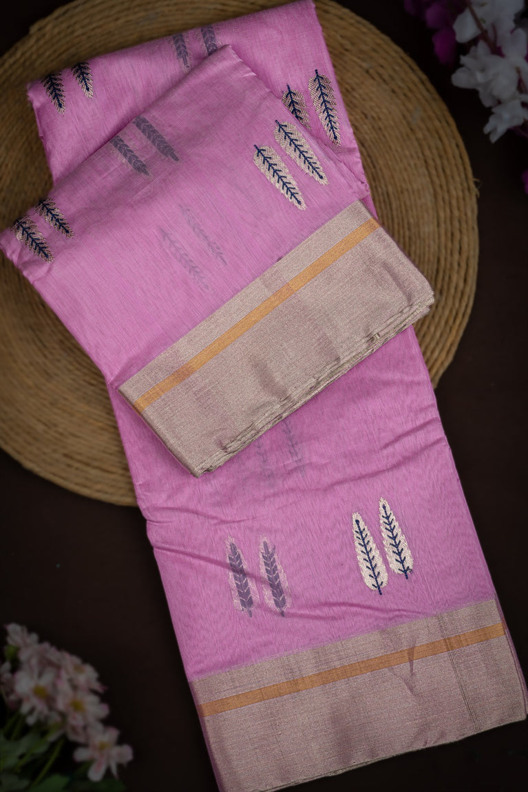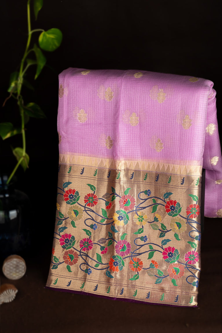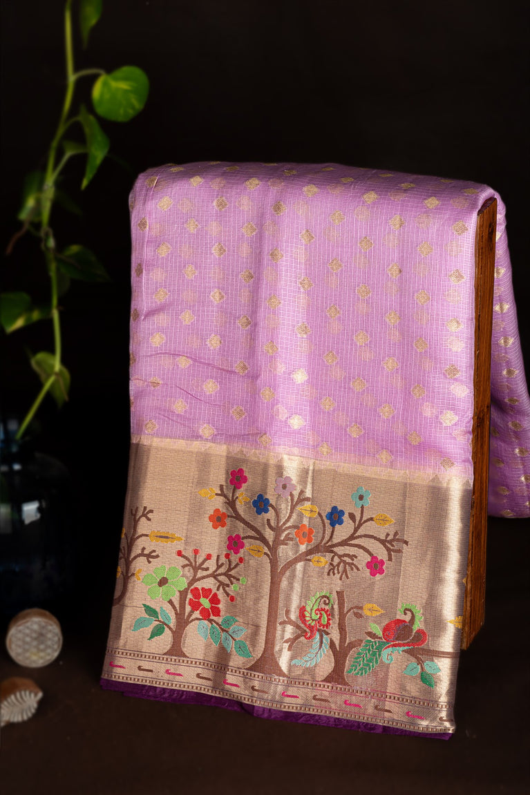 Mandir Lavender & Silver Chanderi Motifs Saree