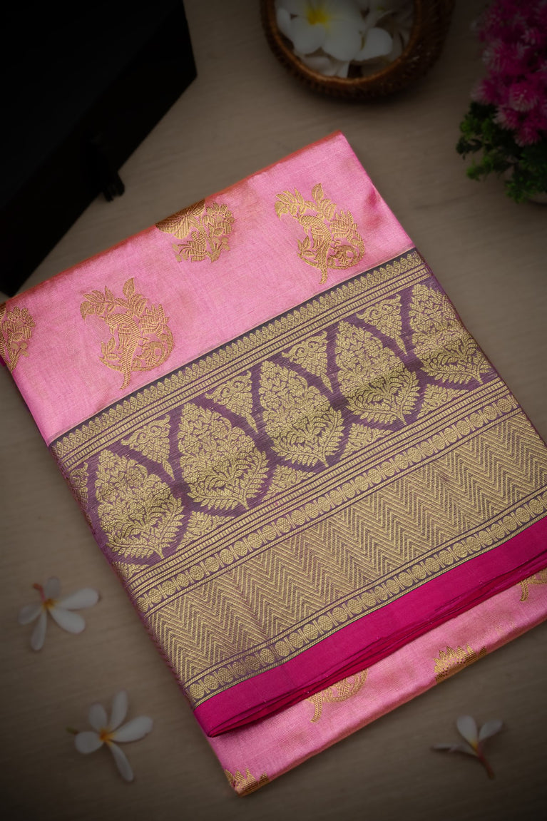 Mandir Light Pink & Silver Venkatagiri Buttis Saree