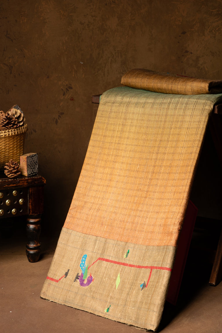 Mandir Mehendi Green & Saffron Coimbatore Motifs Saree