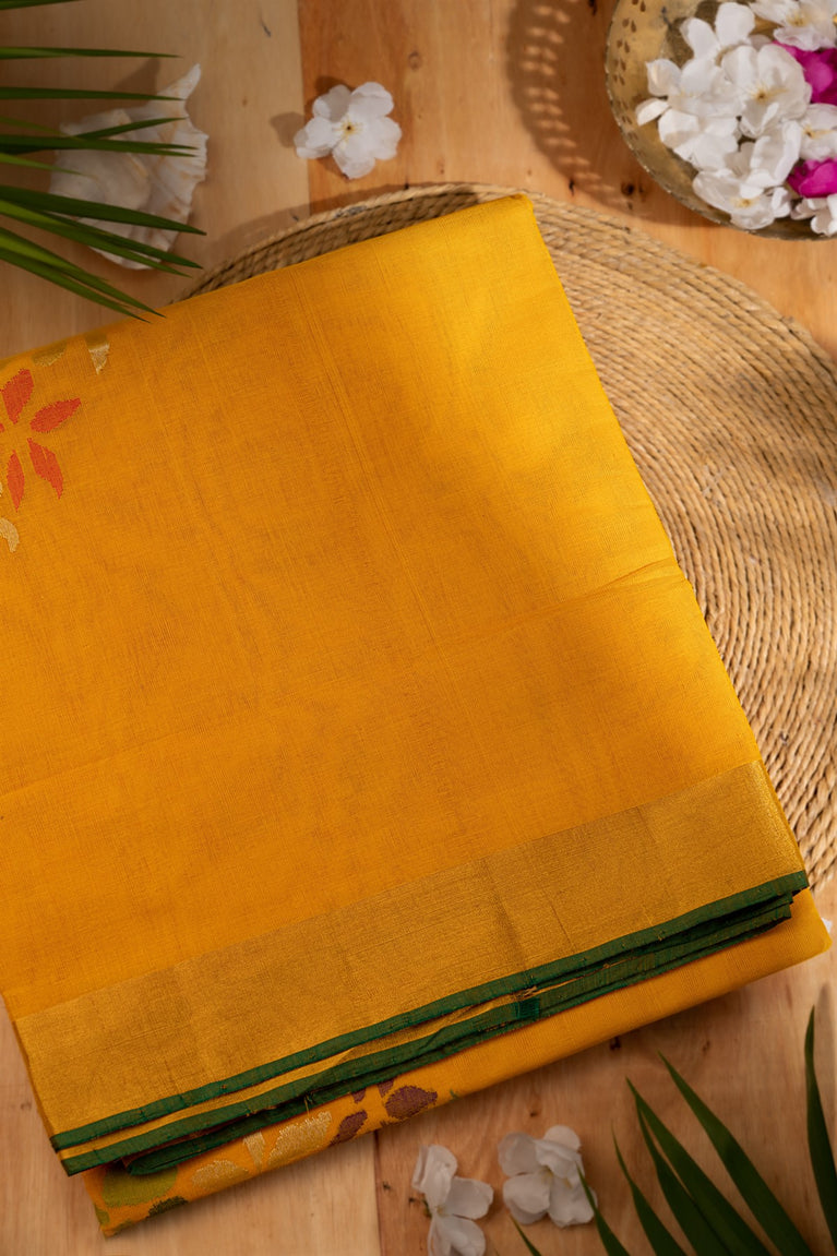 Mandir Mustard & Saffron Venkatagiri Motifs Saree