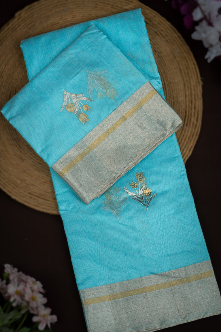 Mandir Sky Blue & Silver Chanderi Motifs Saree