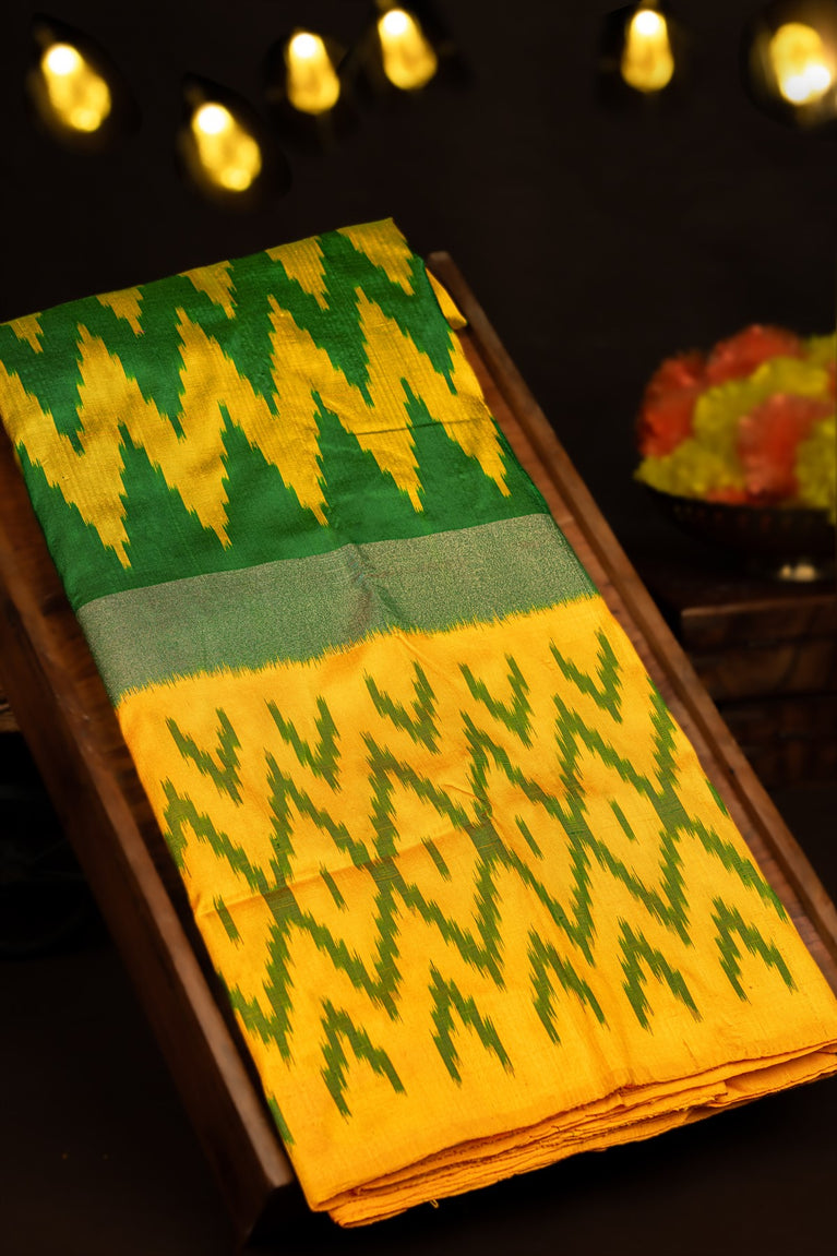 Varamahalakshmi Cream & Mehendi Green Patola Ikat Saree