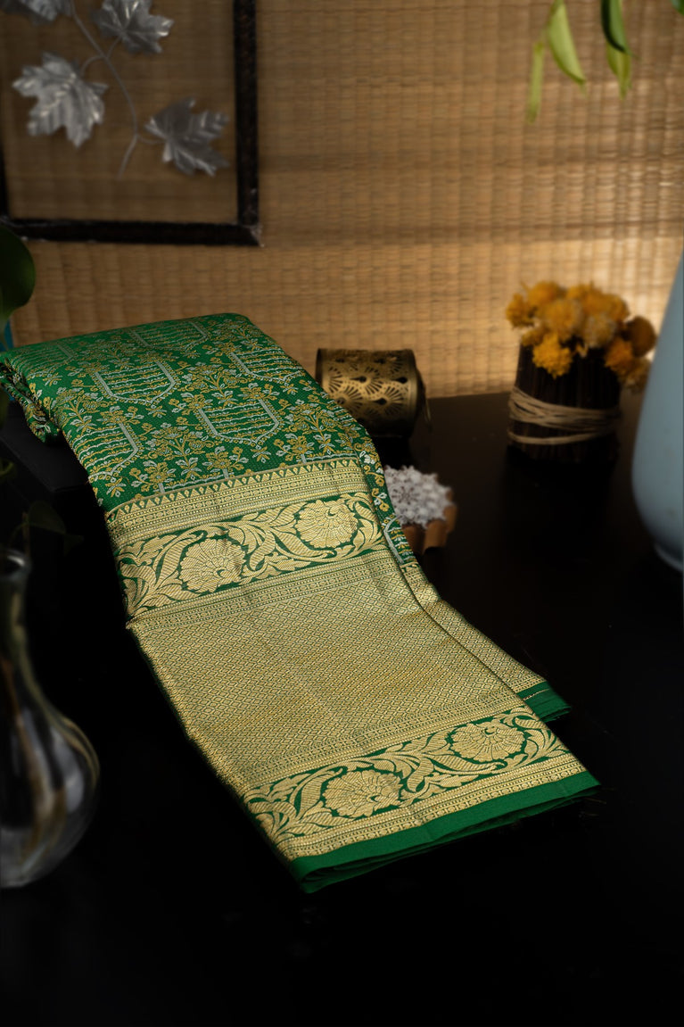 Varamahalakshmi Dark Green & Dark Green Kancheepuram Jaal Saree